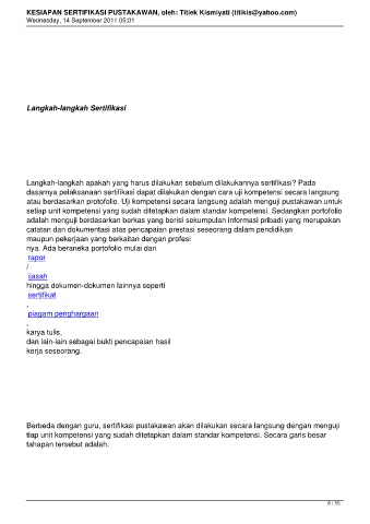 KESIAPAN SERTIFIKASI PUSTAKAWAN, oleh: Titiek Kismiyati (titikis@yahoo.com)