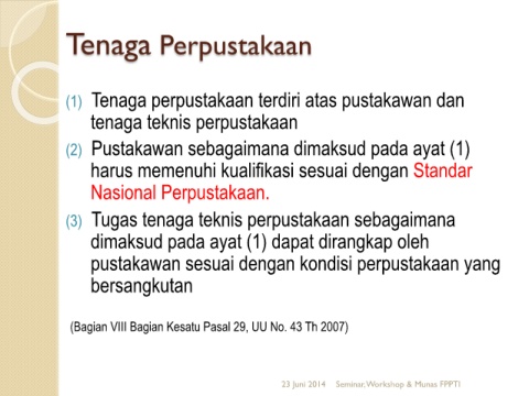 (1) Tenaga perpustakaan terdiri atas pustakawan dan