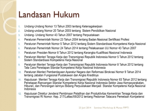 4. Peraturan Pemerintah Nomor 23 Tahun 2004 tentang Badan Nasional Sertifikasi Profesi