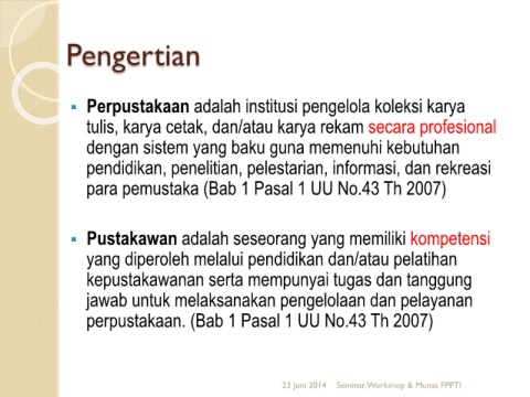 § Pustakawan adalah seseorang yang memiliki kompetensi