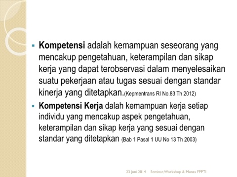 § Kompetensi Kerja dalah kemampuan kerja setiap